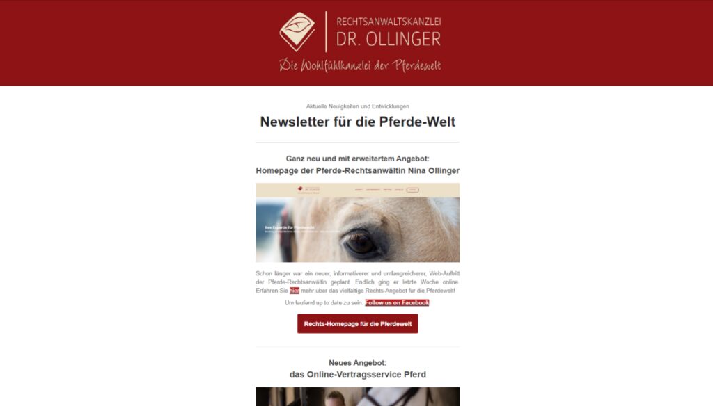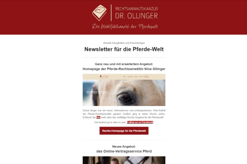 Aktueller Newsletter der Pferderechtsanwältin Dr. Nina Ollinger